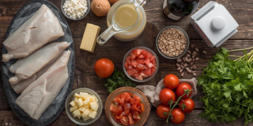 Assemble all the D'elice of Flat White Fish Dugl'ere' Recipe ingredients on the preparation table.