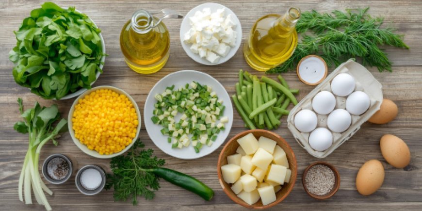Prepare a savoury duck egg frittata with sweetcorn and beans using duck eggs, potatoes, goat's cheese, watercress, sweetcorn, and dill. Here is a simple recipe with images for a rich and creamy taste.