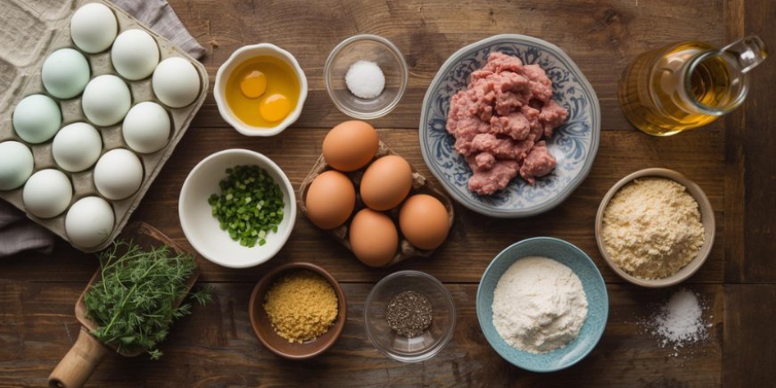 Assemble all the Quail Scotch Eggs ingredients on the preparation table.