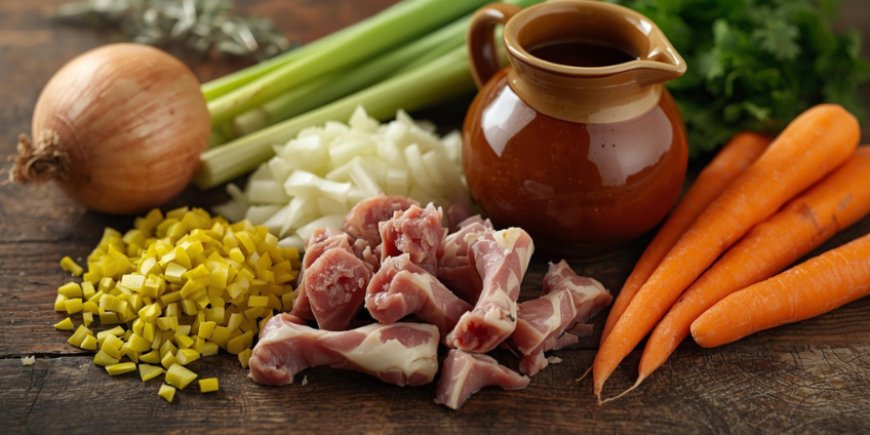 Assemble all the roast gravy sauce ingredients on the preparation table.